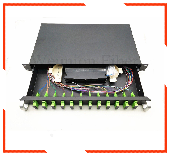24 adet SC veya LC duplex adaptör (48 fiber çekirdek kapasitesi)